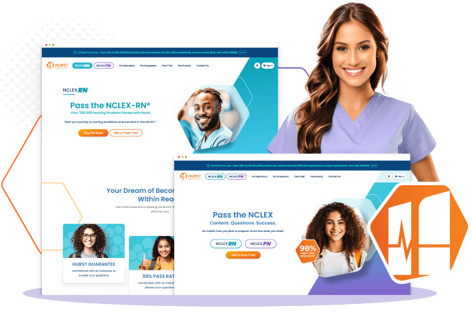 Hurst Review is a leader in preparing nursing students for the National Council Licensure Examination (NCLEX) exams for Registered Nurse (RN) and Practical Nurse (PN) licensure. Hurst Review sought to improve key aspects of their digital experience to better serve their growing student base. Their primary objectives were to increase enrollment, reduce call center inquiries, and create a cohesive design for use in both their public marketing website and their student-only Learning Management System (LMS) site.